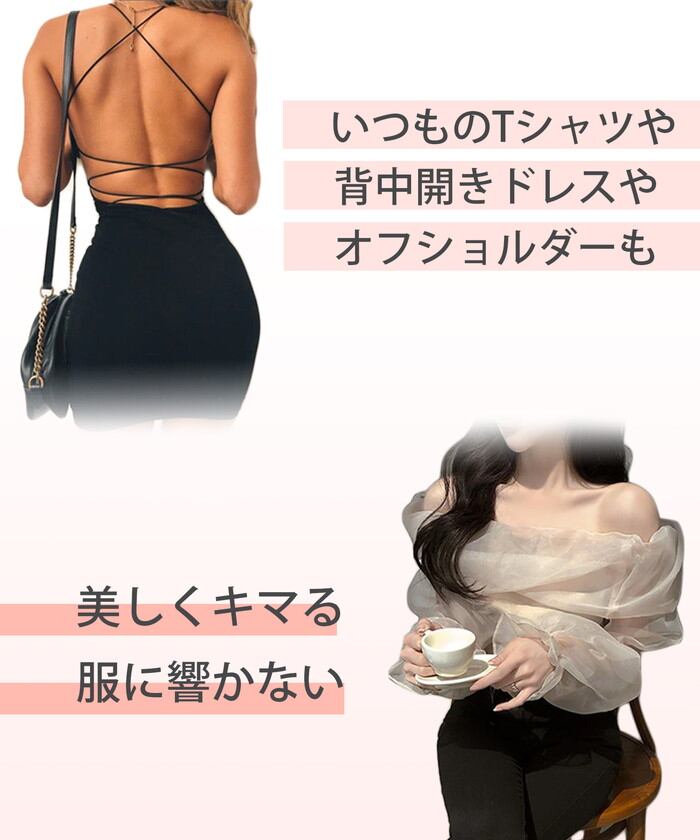 ・水着・背中あきトップス・ドレスにも使えて下着のラインを気にせずファッションを楽しめるアイテム。