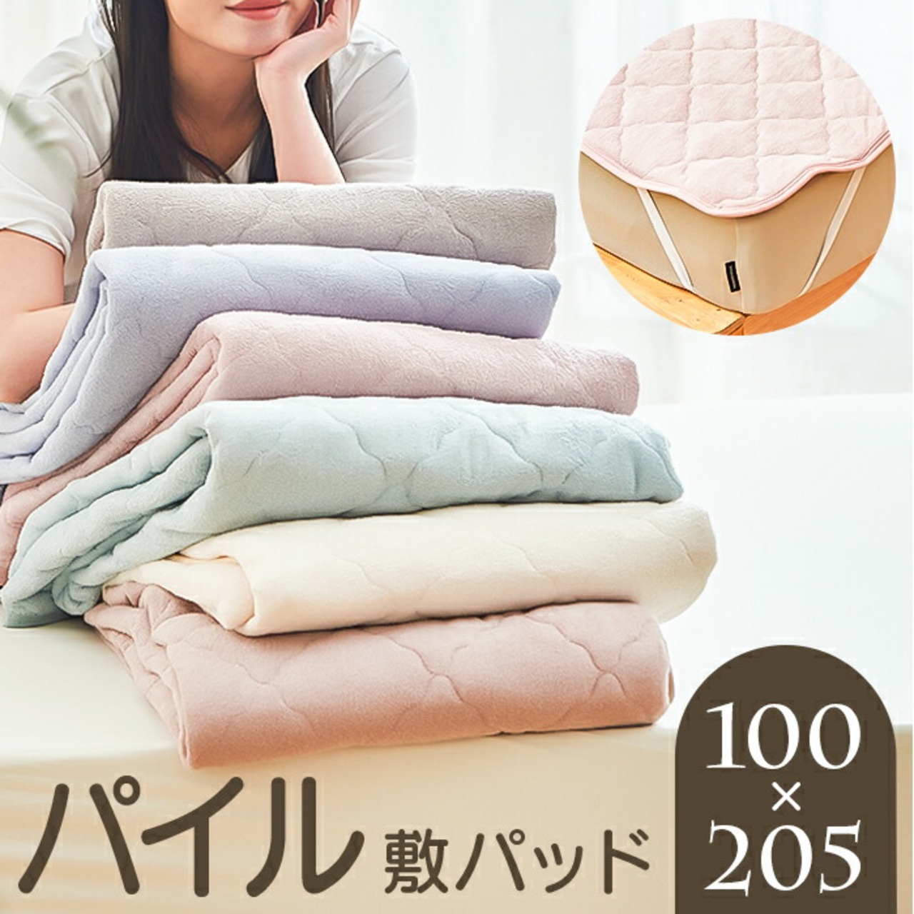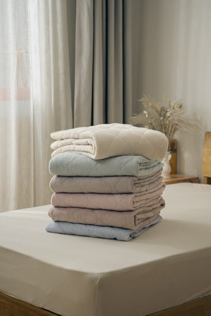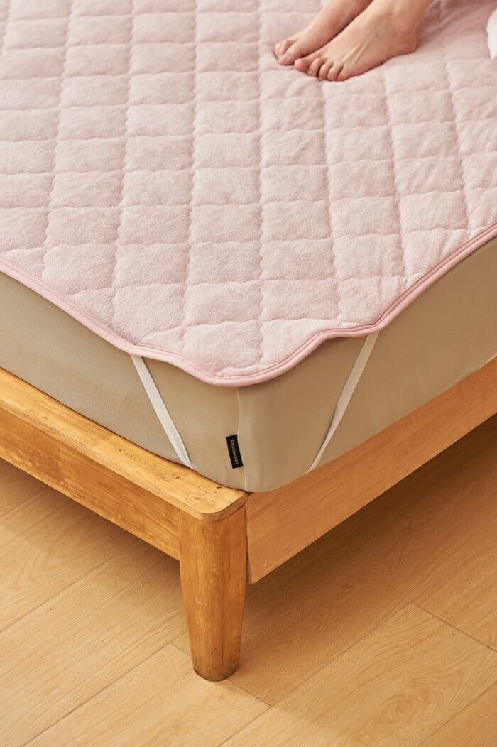 ・ふわふわタオル生地の快適敷きパッド ゴムバンドで伸縮可能。