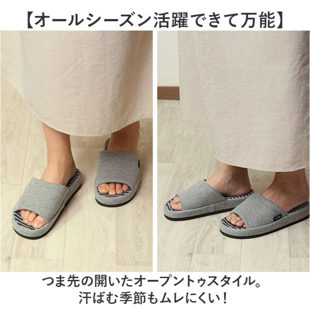 ・つま先の開いたオープントゥスタイル。汗ばむ季節もムレにくい!