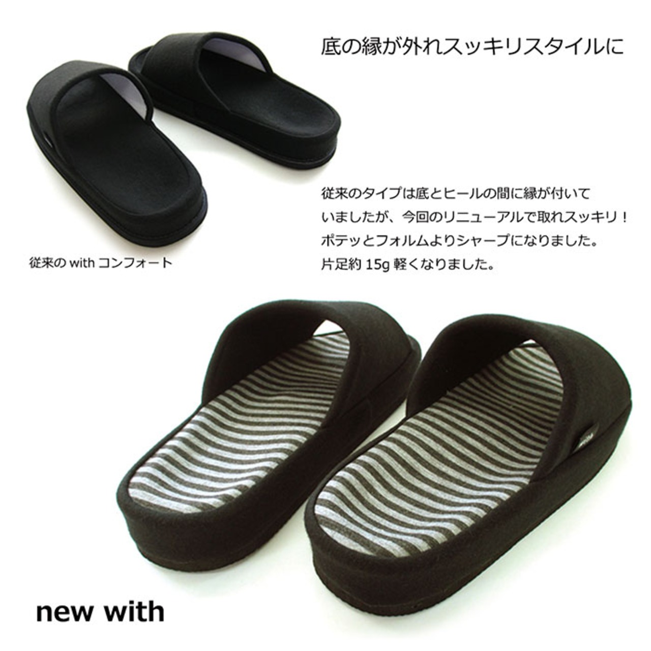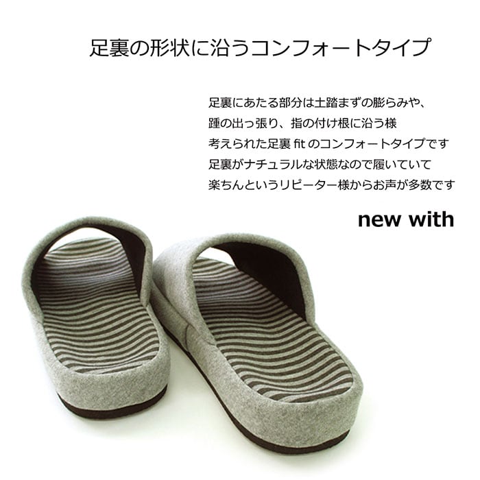 ・足裏の形状に沿うコンフォートスリッパ!「with 足のサイズにFit」が新登場。