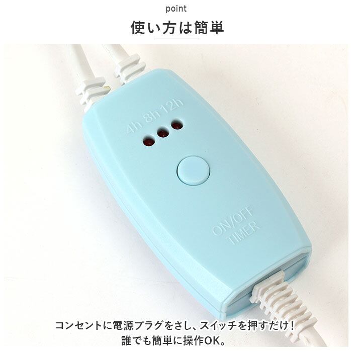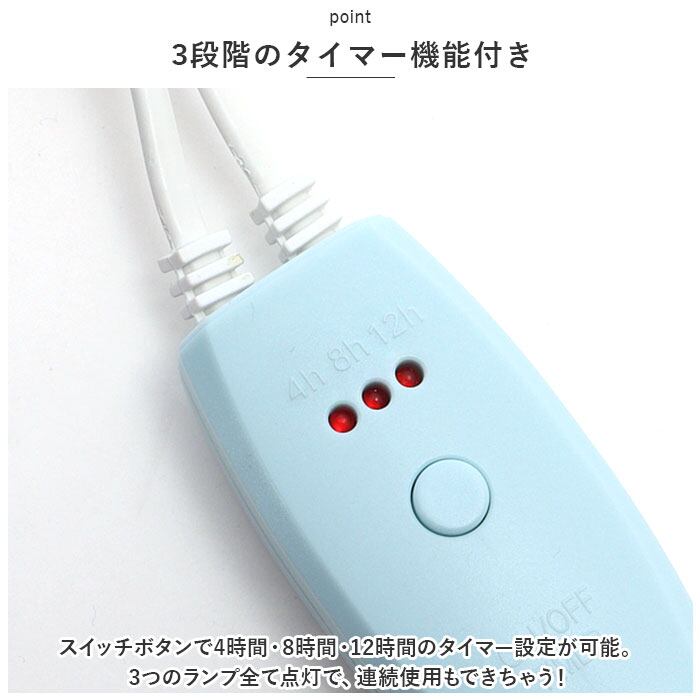 ・スイッチボタンで4時間・8時間・12時間のタイマー設定が可能。3つのランプ全て点灯で、連続使用もできちゃう!