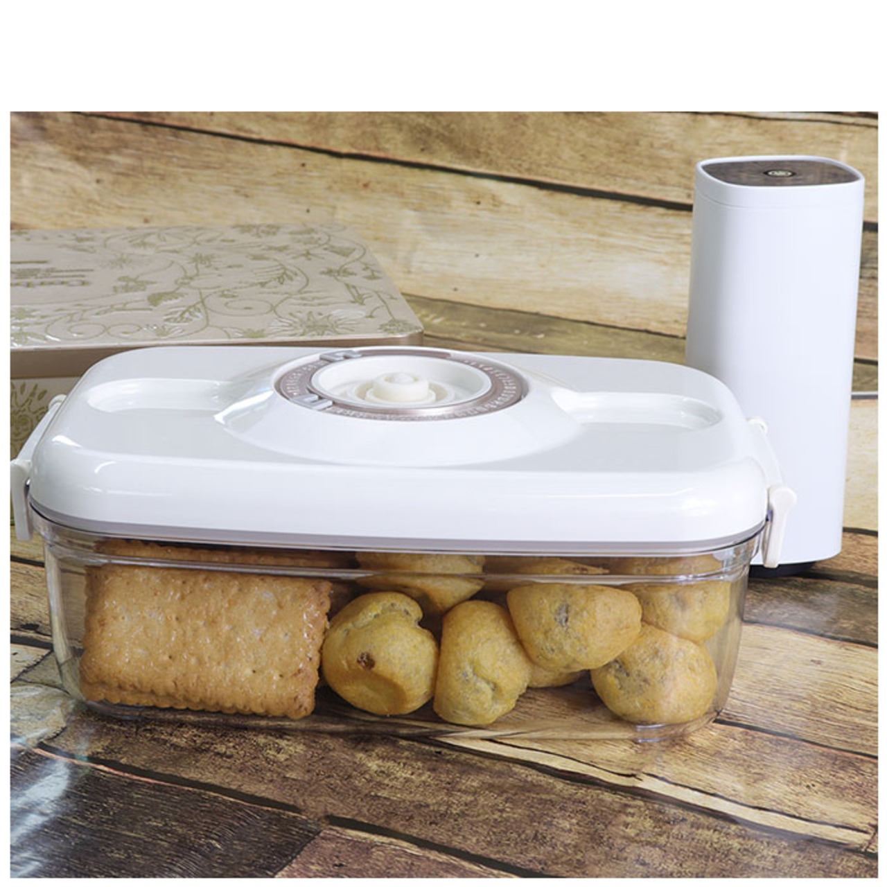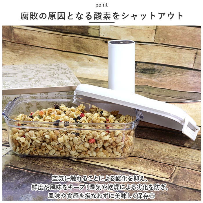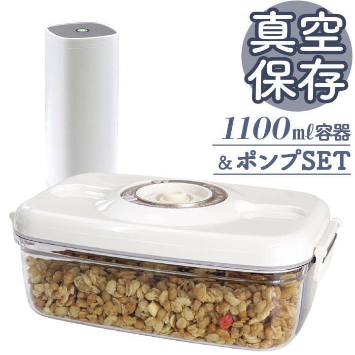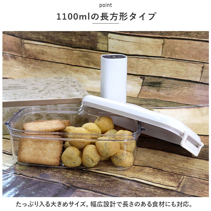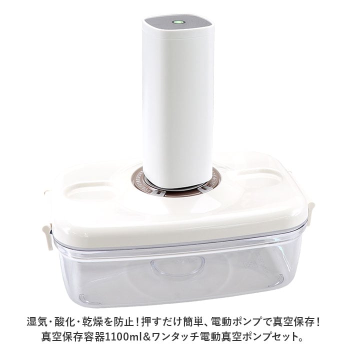 ・湿気・酸化・乾燥を防止!押すだけ簡単、電動ポンプで真空保存!真空保存容器1100ml&ワンタッチ電動真空ポンプセット。