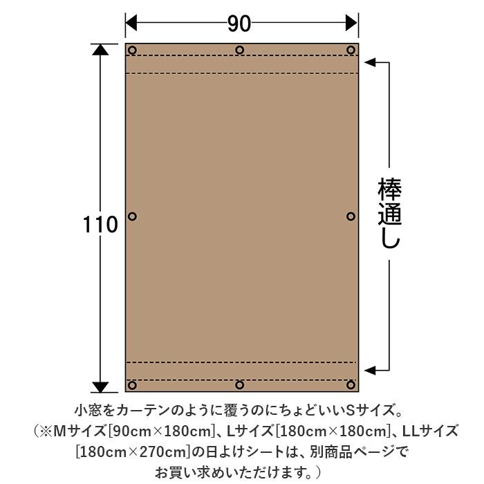 ・小窓をカーテンのように覆うのにちょどいい「90cm×110cm」のSサイズ。(※Mサイズ[90cm×180cm]、Lサイズ[180cm×180cm]、LLサイズ[180cm×270cm]の日よけシートは、別商品ページでお買い求めいただけます。)