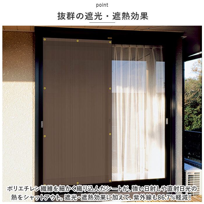 ・ポリエチレン繊維を細かく織り込んだシートが、強い日射しや直射日光の熱をシャットアウト。遮光・遮熱効果に加えて、紫外線も86.7%軽減!