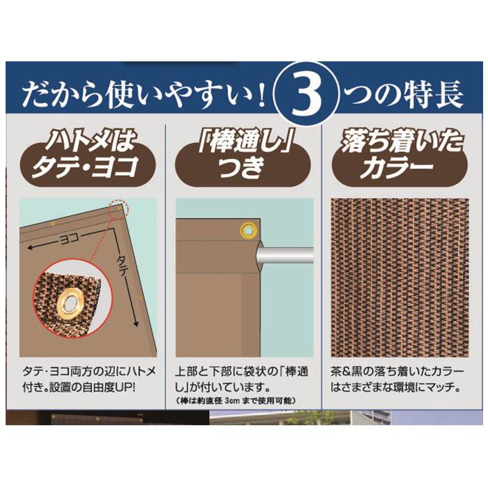 ・シートの上下にはポールを通すための「袋状の棒通し」が付いているため、オーニングとして設置するときや洗濯物の目隠しにも便利。