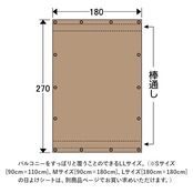 ・バルコニーをすっぽりと覆うことのできる「180cm×270cm」のLLサイズ。(※Sサイズ[90cm×110cm]、Mサイズ[90cm×180cm]、Lサイズ[180cm×180cm]の日よけシートは、別商品ページでお買い求めいただけます。)