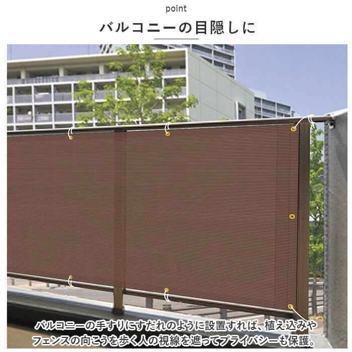 ・バルコニーの手すりにすだれのように設置すれば、植え込みやフェンスの向こうを歩く人の視線を遮ってプライバシーも保護。