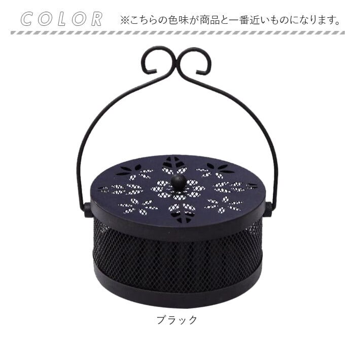 ・フタの花びらの紋様に加え、側面にも小さな穴が無数に空いているため、蚊取り線香の煙を部屋中にゆっくりと燻らせるのに最適。