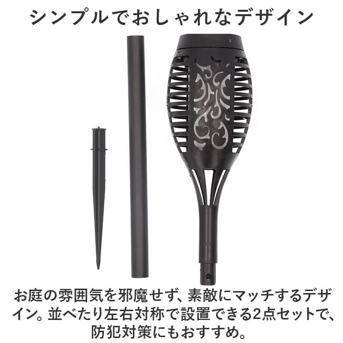 ・お庭の雰囲気を邪魔せず、素敵にマッチするデザイン。並べたり左右対称で設置できる2点セットで、防犯対策にもおすすめ。