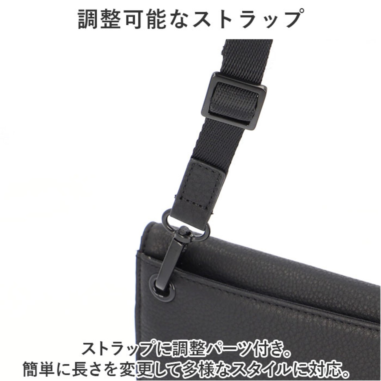 ・ストラップに調整パーツ付き。簡単に長さを変更して多様なスタイルに対応。