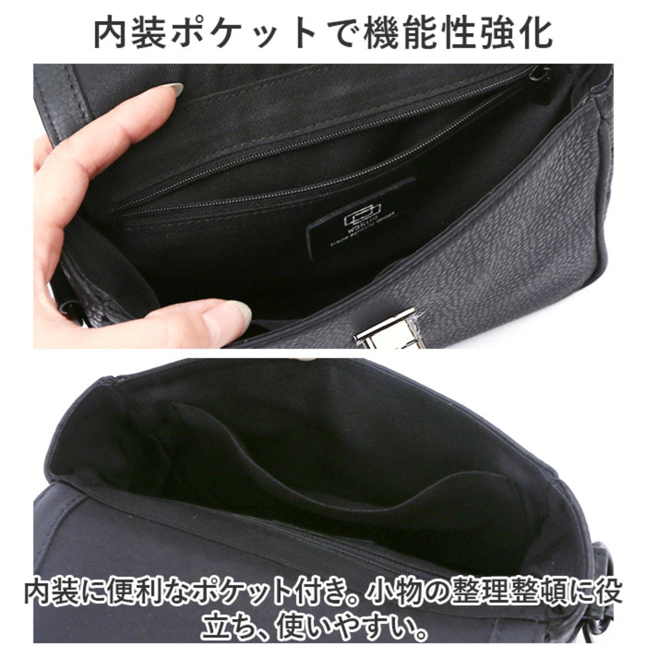 【内装ポケットで機能性強化】内装に便利なポケット付き。小物の整理整頓に役立ち、使いやすい。