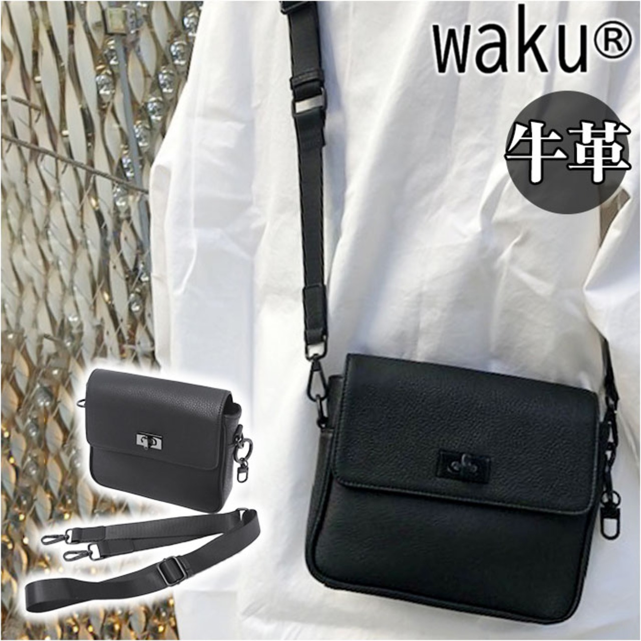 waku ワク ショルダーバッグ WK-0050 通販 スクエアバッグ ショルダーバック ショルダー 斜め掛けバッグ 斜め掛けバック 斜めかけ 肩掛け ボディバッグ ボディバック ワンショルダー 革 レザー スクエア型 スクエア コンパクト きれいめ ミニ