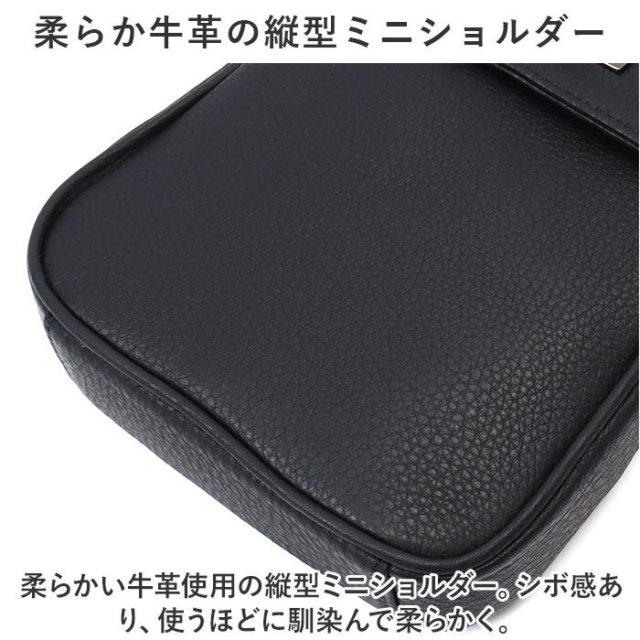 ・柔らかい牛革使用の縦型ミニショルダー。シボ感あり、使うほどに馴染んで柔らかく。