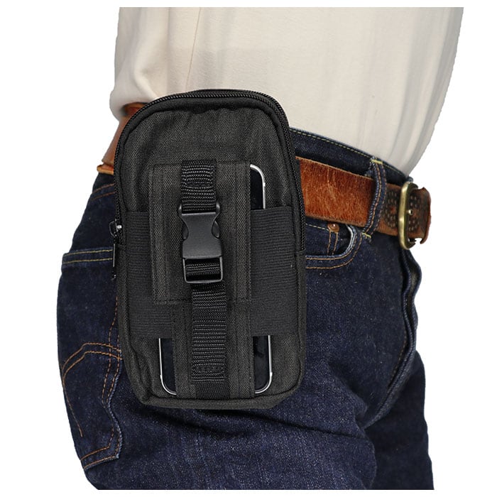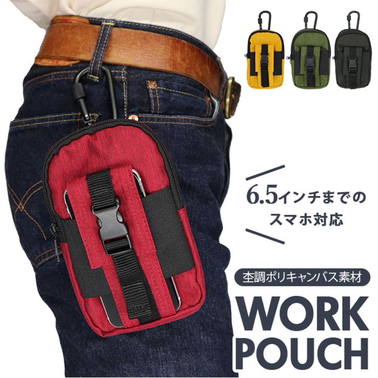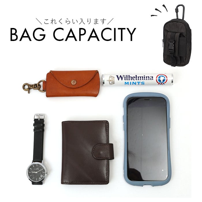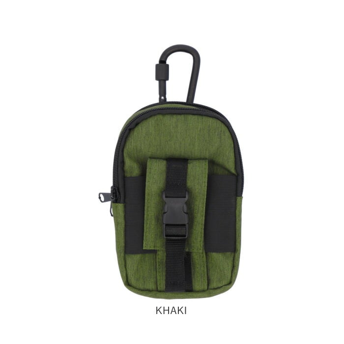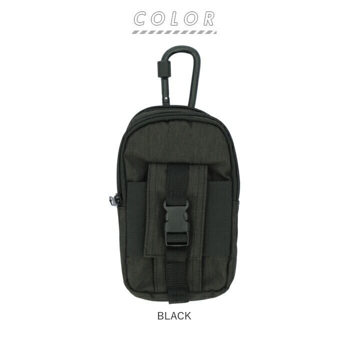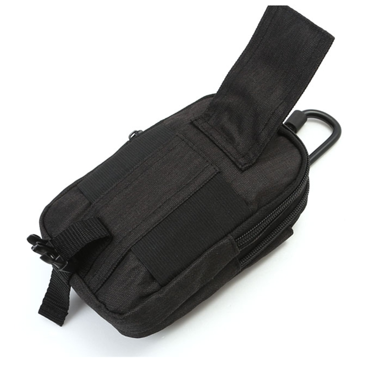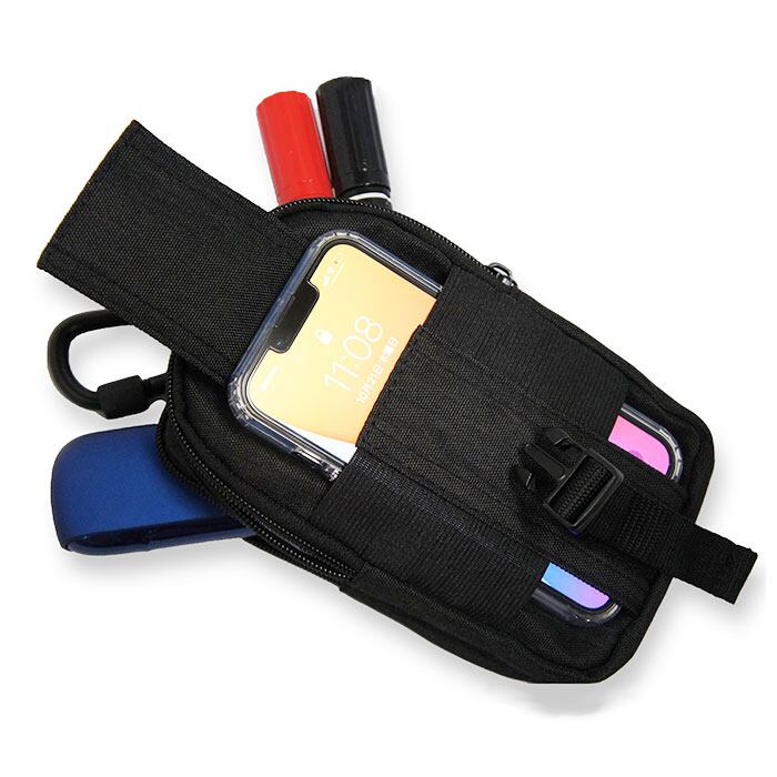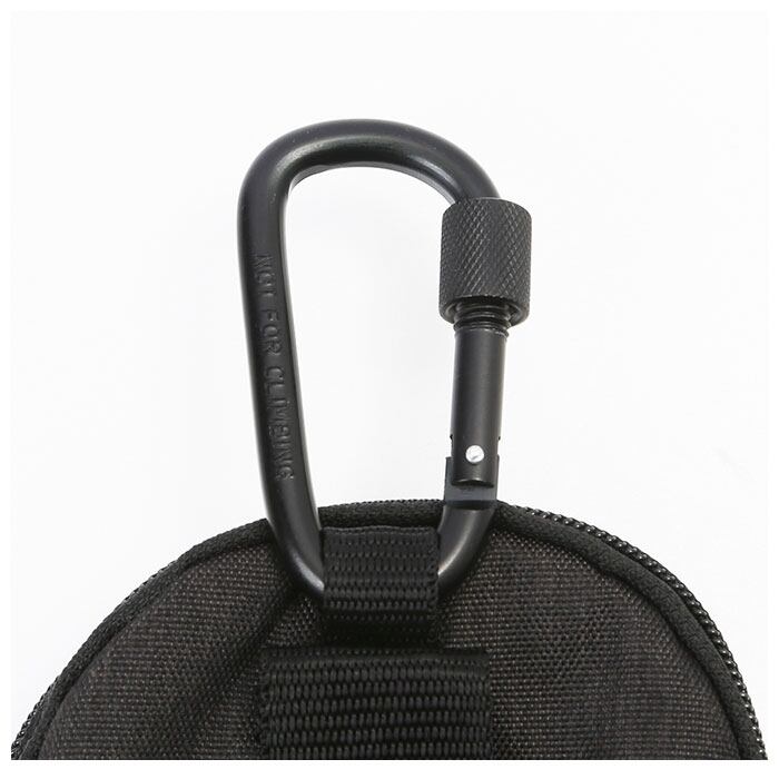 ※重量のある物を中に入れる際カラビナはご使用せず、ポーチ本体についているベルト通しのみで装着してください。