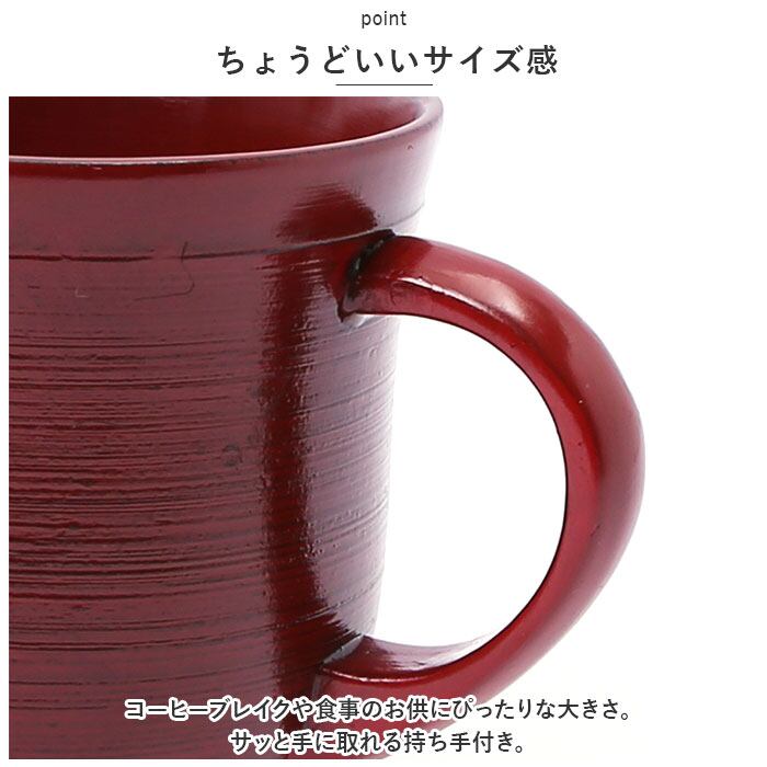 ・コーヒーブレイクや食事のお供にぴったりな大きさ。サッと手に取れる持ち手付き。