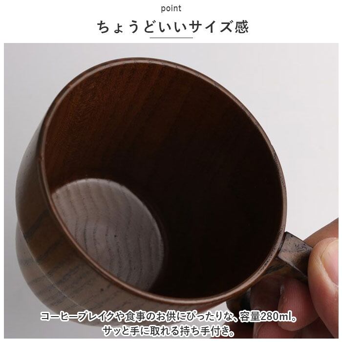 ・コーヒーブレイクや食事のお供にぴったりな、容量280ml。サッと手に取れる持ち手付き。