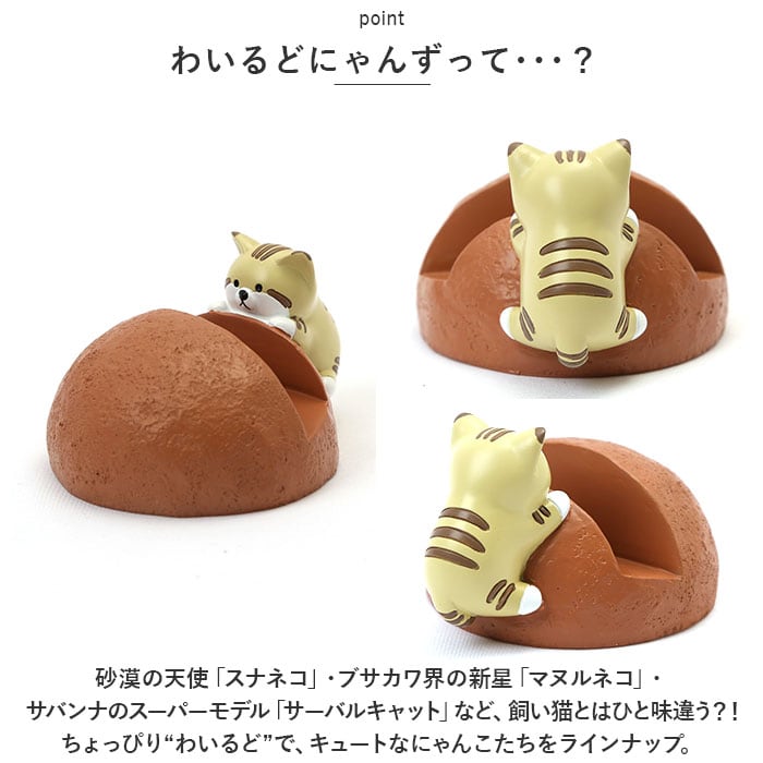 ・砂漠の天使「スナネコ」・ブサカワ界の新星「マヌルネコ」・サバンナのスーパーモデル「サーバルキャット」など、飼い猫とはひと味違う?!ちょっぴり“わいるど”で、キュートなにゃんこたちをラインナップ。