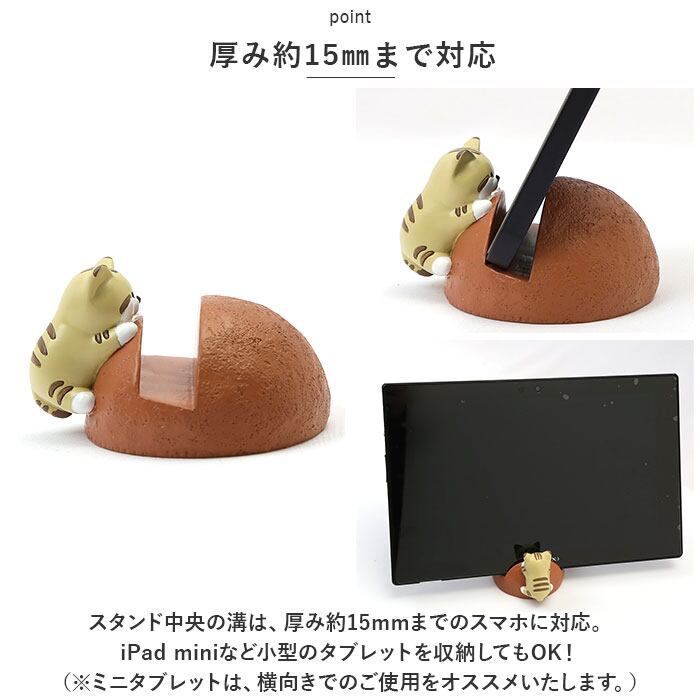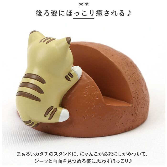 ・まぁるいカタチのスタンドに、にゃんこが必死にしがみついて、ジーッと画面を見つめる姿に思わずほっこり♪スマホを充電するたびに心癒されるデザイン。