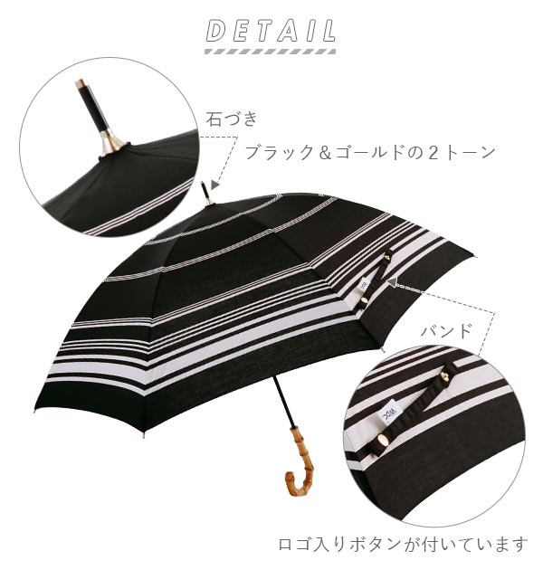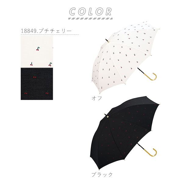 ※傘生地には防水はっ水加工を施し、縫製にははっ水糸を使用していますが、激しい雨や長時間のご使用では雨が染み込むことがございます。また、飾り加工部分(刺繍、ステッチ、パイピング等)は、デザインの特性上完全な防水はっ水加工が難しい場合があり雨が染みやすいのでご注意ください。
