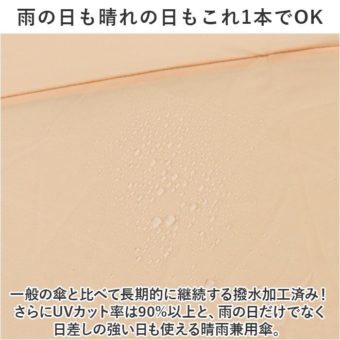・一般の傘と比べて長期的に継続する撥水加工済み!さらにUVカット率は90%以上と、雨の日だけでなく日差しの強い日も使える晴雨兼用傘。