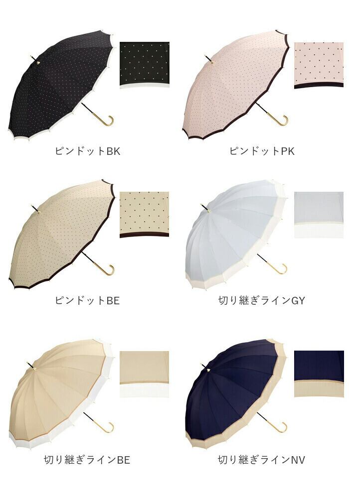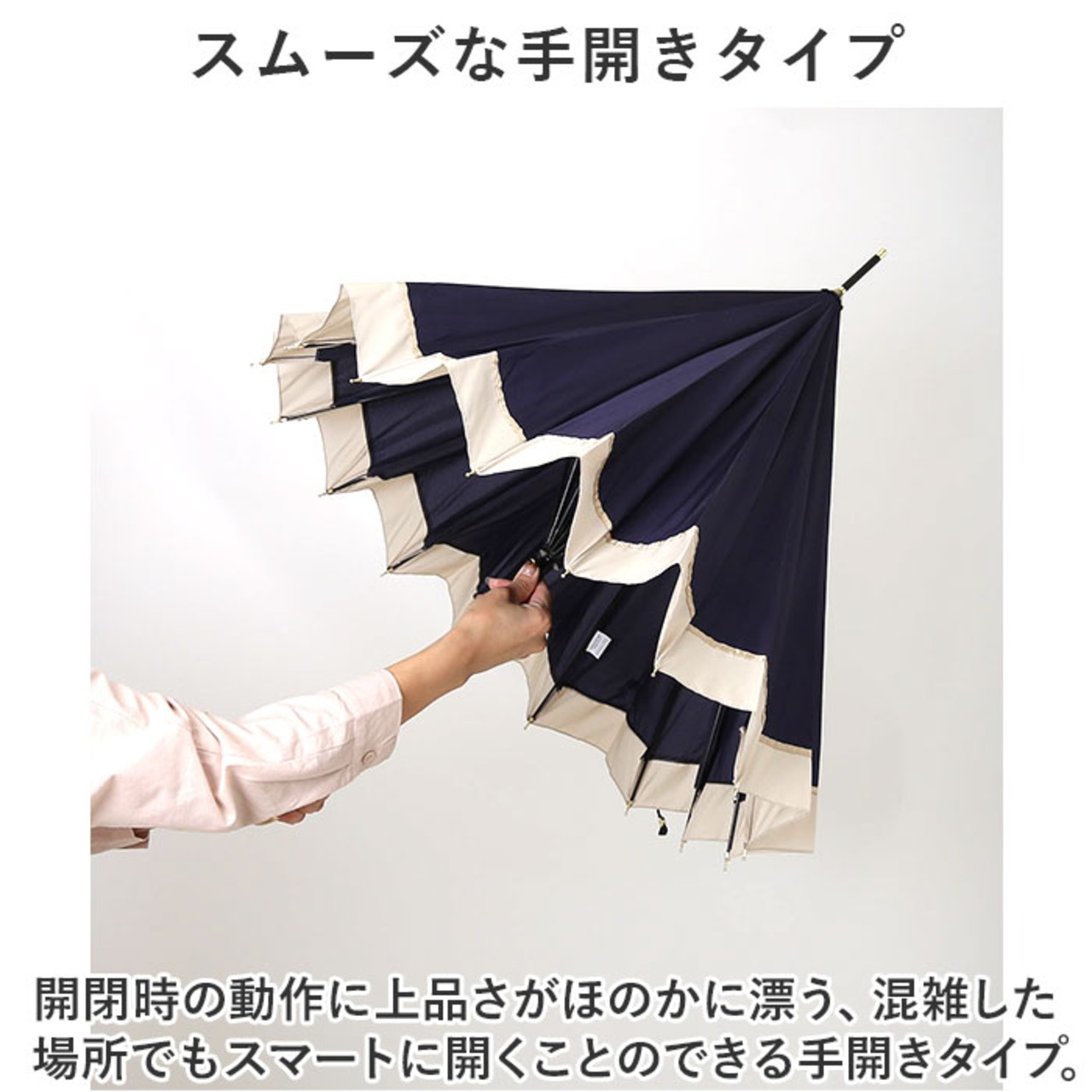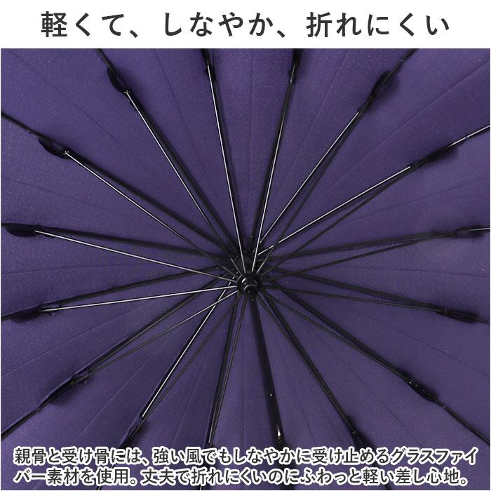 ・通常の傘よりも骨数の多い耐風性に優れた16本骨仕様で、雨風の強い日でも安心。円を描くような美しいシルエットが特徴。