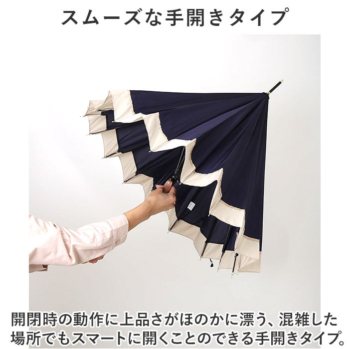 ・開閉時の動作に上品さがほのかに漂う、混雑した場所でもスマートに開くことのできる手開きタイプ。