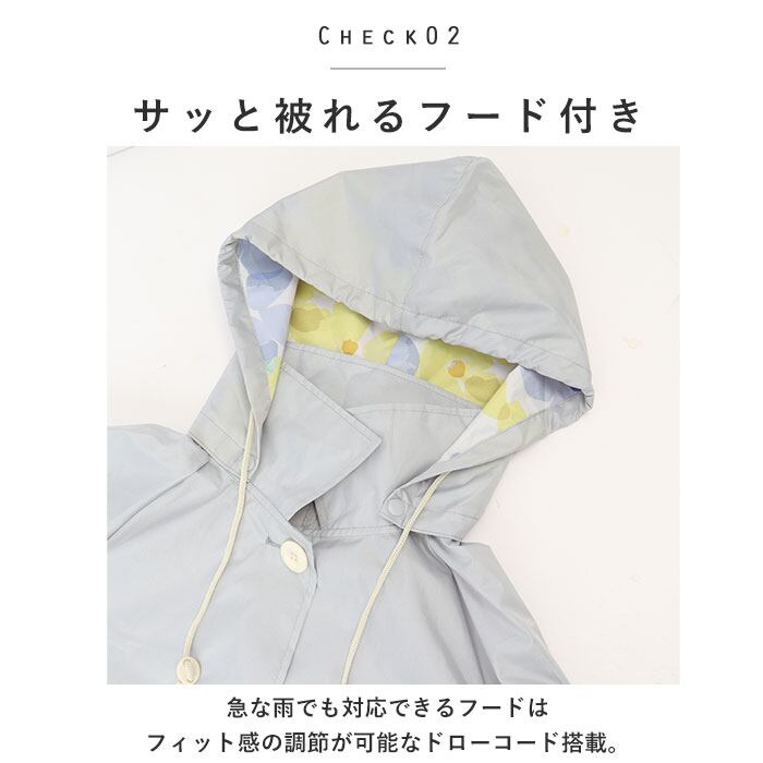 wpc レインコート R-1133 通販 レディース 撥水 はっ水 折りたたみ コンパクト おしゃれ シンプル かわいい テキスタイル 袖口折り返し 花柄 フラワー ブランド W by Wpc. ワールドパーティー ラグランスリーブワークコート 雨具 アウター レインウェア レインウエア