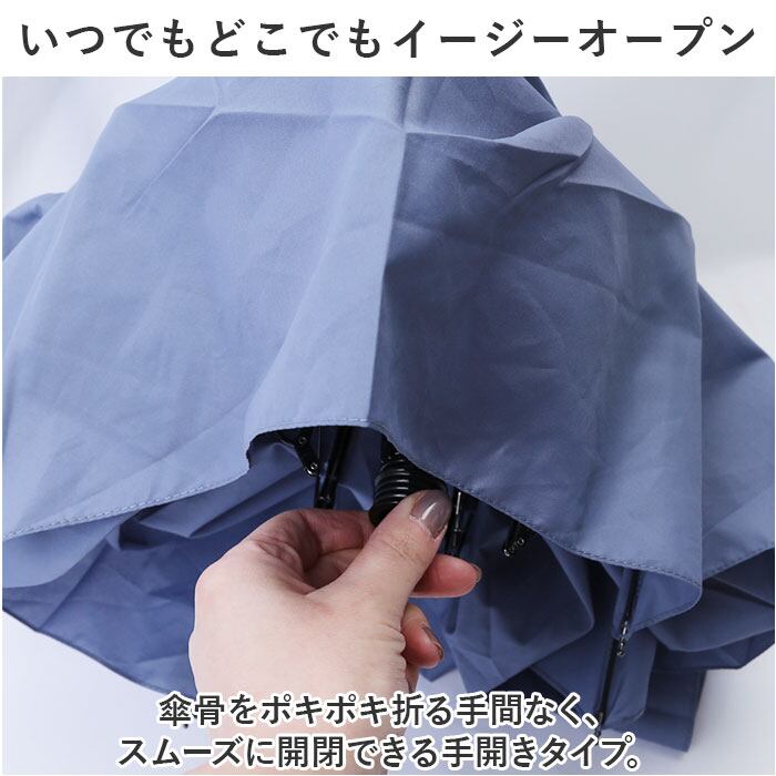 ・傘骨をポキポキ折る手間なく、スムーズに開閉できる手開きタイプ。