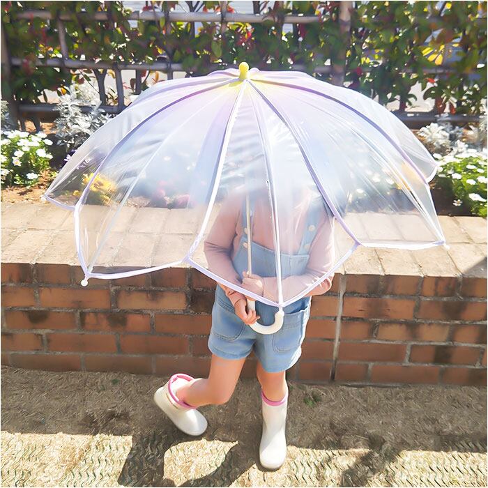 ・傘ですっぽり隠れてもクリア素材だから視界をしっかり確保!お子さまの雨の日の通園通学も安心♪