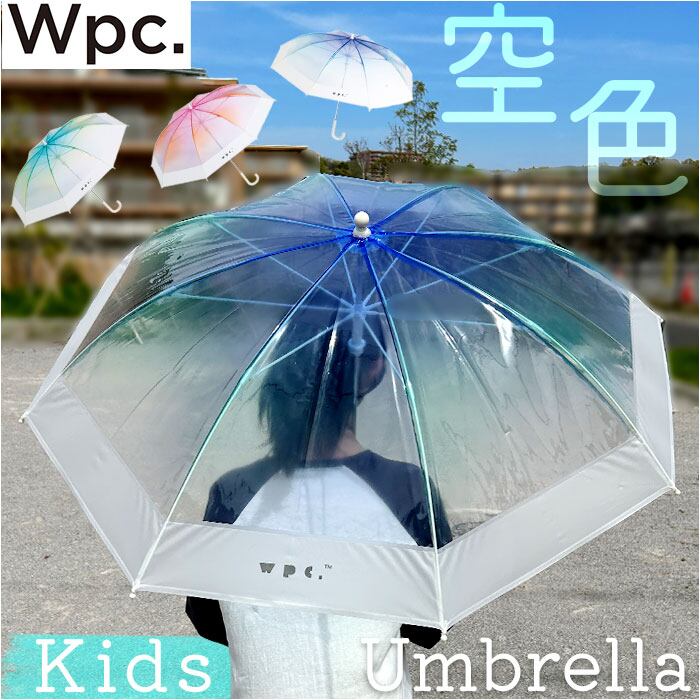 WPC. ワールドパーティ アンブレラ 55cm 長雨傘 キッズ 通販 雨傘 長傘 ビニール傘 透明 キッズ用 ネームタグ こども 子供 子ども カジュアル グラデーション 安心 安全 開閉しやすい ガールズ ボーイズ ユニセックス 男女兼用 ギフト