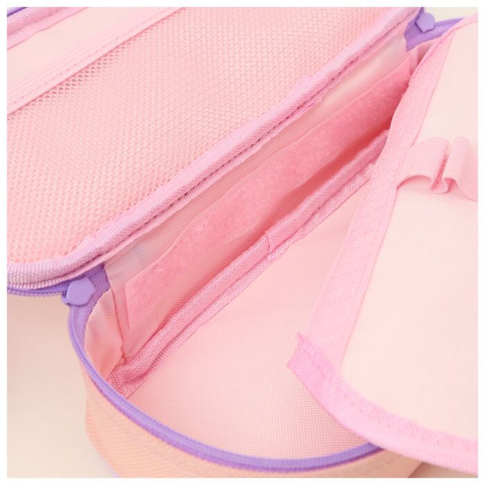 ・開口部は、パカッと開いて収納した文房具がひと目でわかる、出し入れが楽ちんなラウンドファスナータイプ。