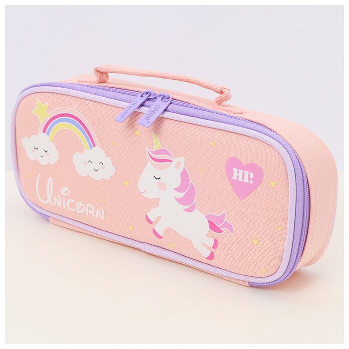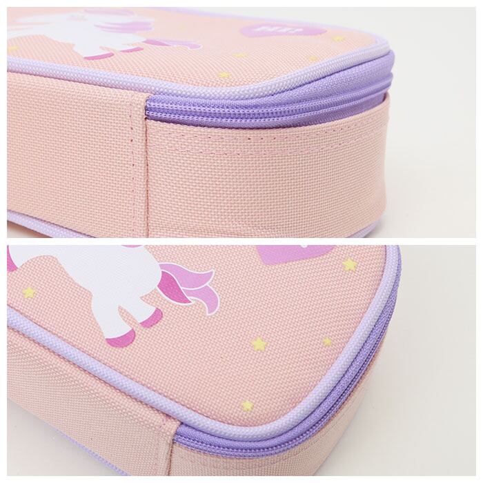 ・丈夫なポリキャンバス生地に、キッズに人気のユニコーンや恐竜のモチーフを可愛らしくプリント!毎日の勉強や宿題がメキメキはかどるPOPなデザイン。