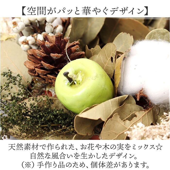 ・天然素材で作られた、お花や木の実をミックス☆自然な風合いを生かしたデザイン。