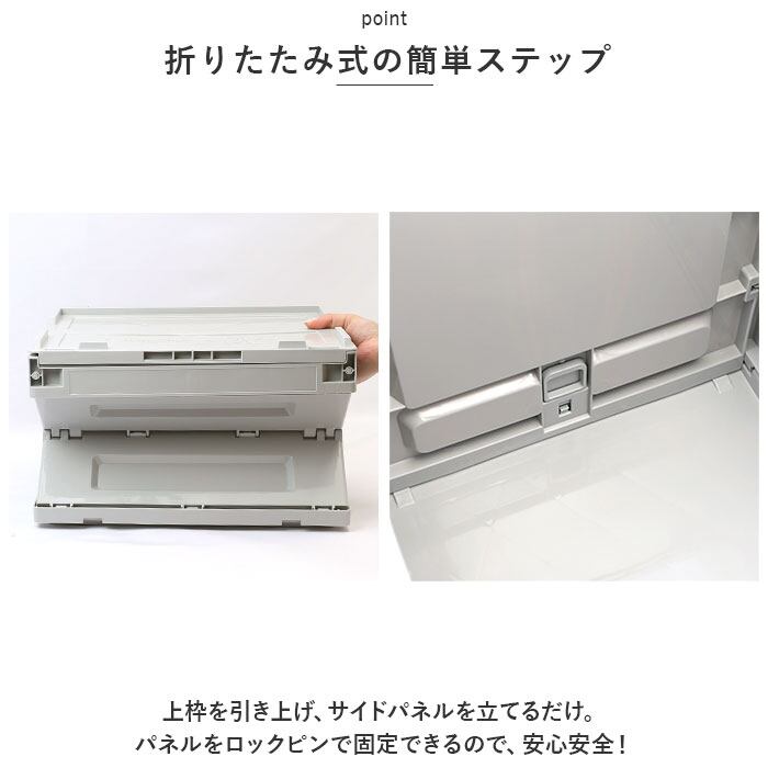 ・上枠を引き上げ、サイドパネルを立てるだけ。パネルをロックピンで固定できるので、安心安全!