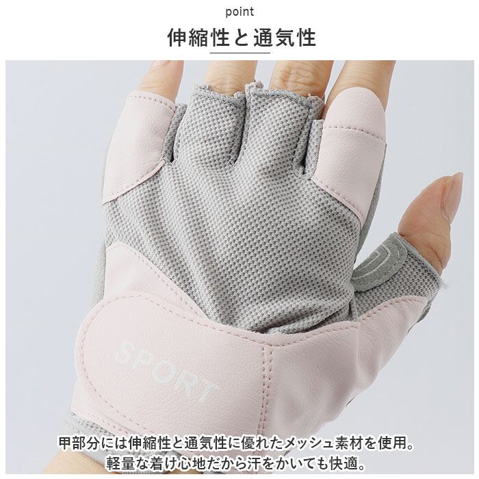 ・手の平部分にはクッション性のある滑り止めが施され、トレーニング器具を持つ際にしっかりグリップ。さらに手の平の痛みやマメの防止対策に。