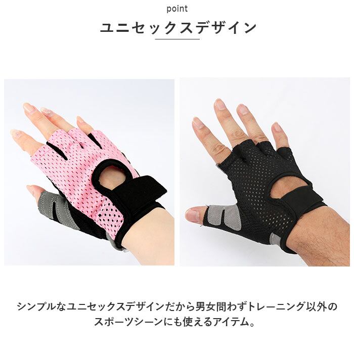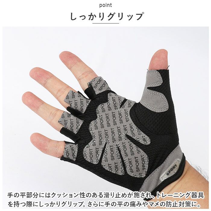 ・手の平部分にはクッション性のある滑り止めが施され、トレーニング器具を持つ際にしっかりグリップ。さらに手の平の痛みやマメの防止対策に。