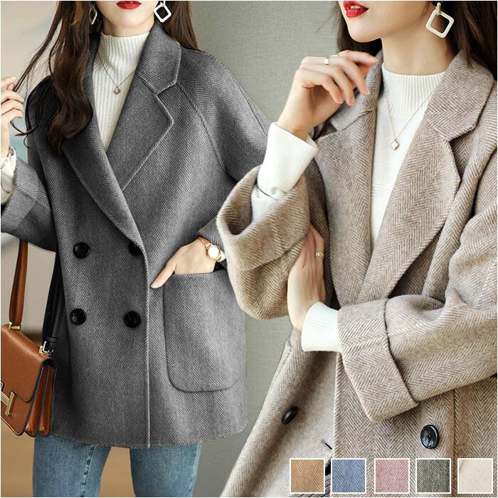 ・上品な大人の雰囲気が醸し出されるヘリボーン柄のショートコートが登場♪