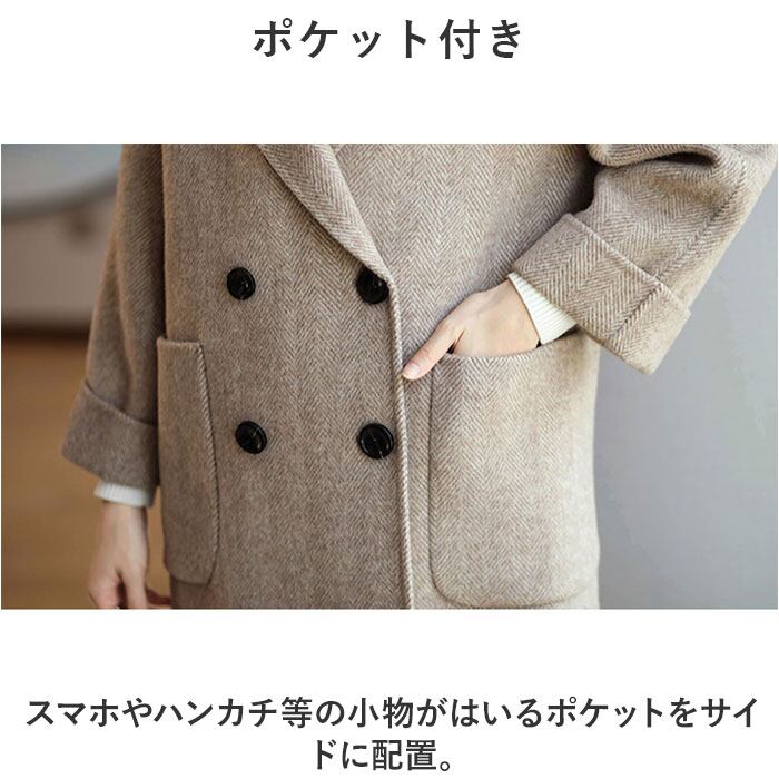・ベーシックなダブルボタン仕様。お洋服に合わせやすく、どんなスタイルにも幅広くマッチ。流行り廃りのないデザインなので長く愛用できる◎
