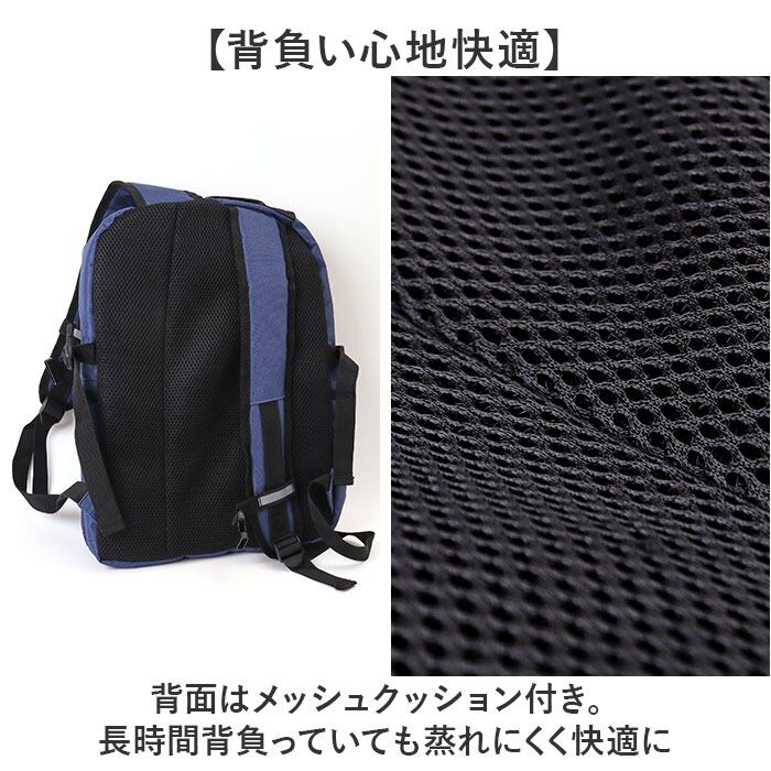 ・背面とショルダーベルトはメッシュクッション付き。長時間背負っていても蒸れにくく快適に