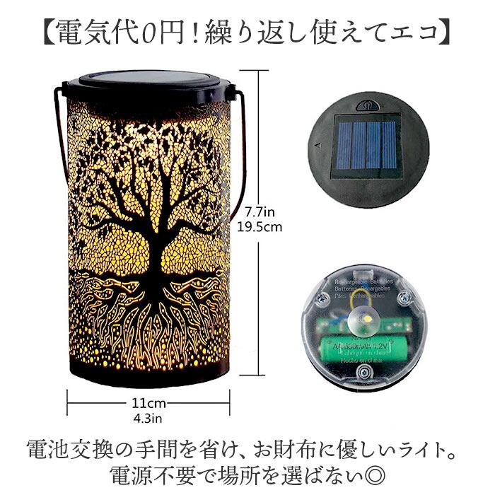 ・ソーラーパネルに太陽光を当てるだけで日中に充電、暗くなると自動点灯するソーラー充電式◎