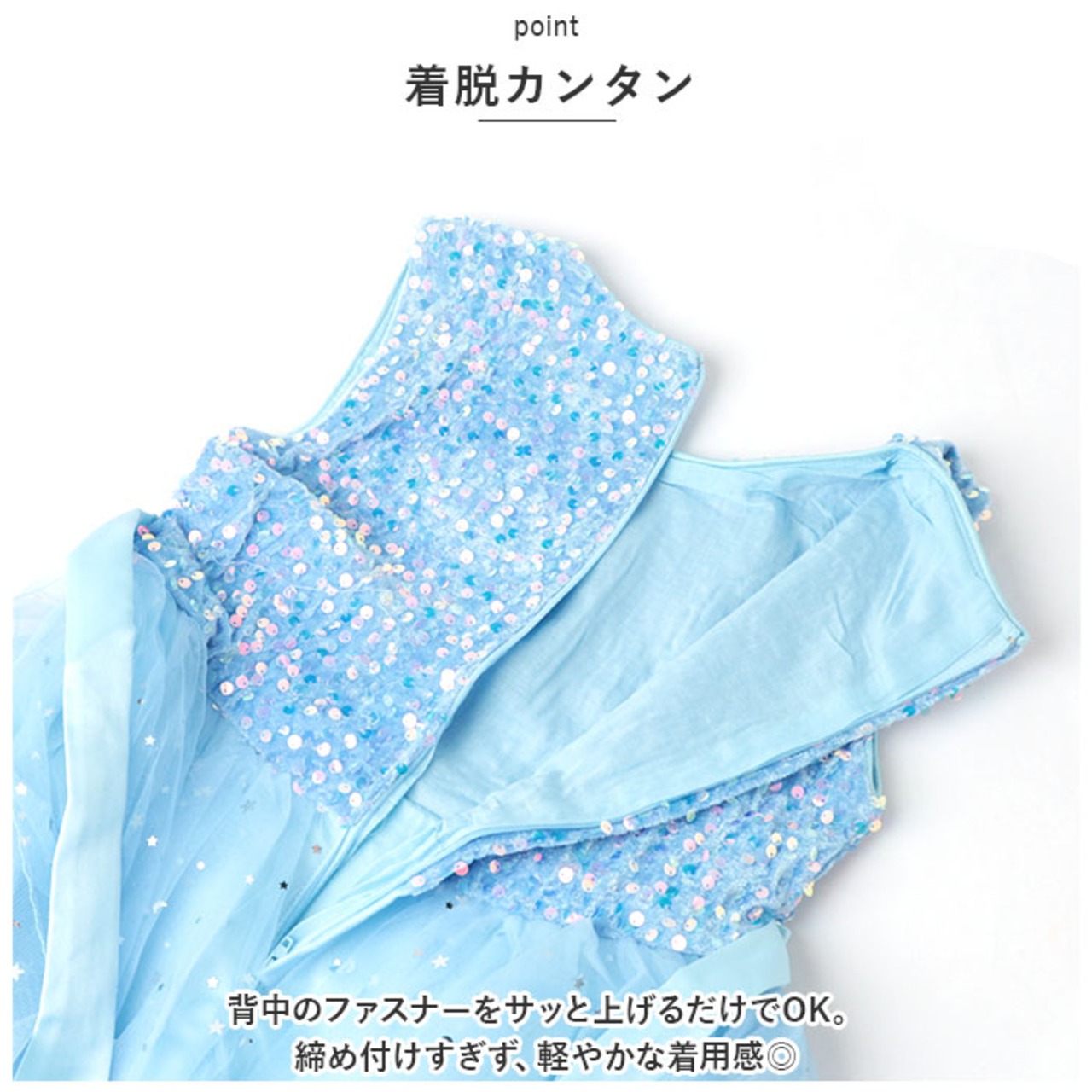 ・背中のファスナーをサッと上げるだけでOK。締め付けすぎず、軽やかな着用感◎