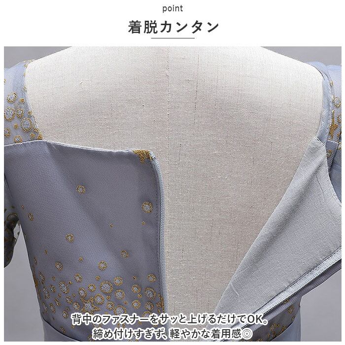 ・背中のファスナーをサッと上げるだけでOK。締め付けすぎず、軽やかな着用感◎