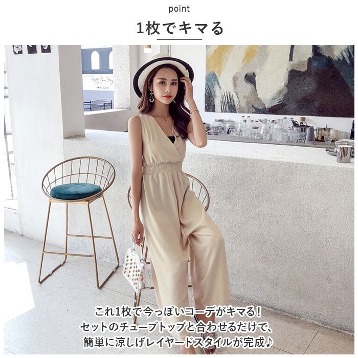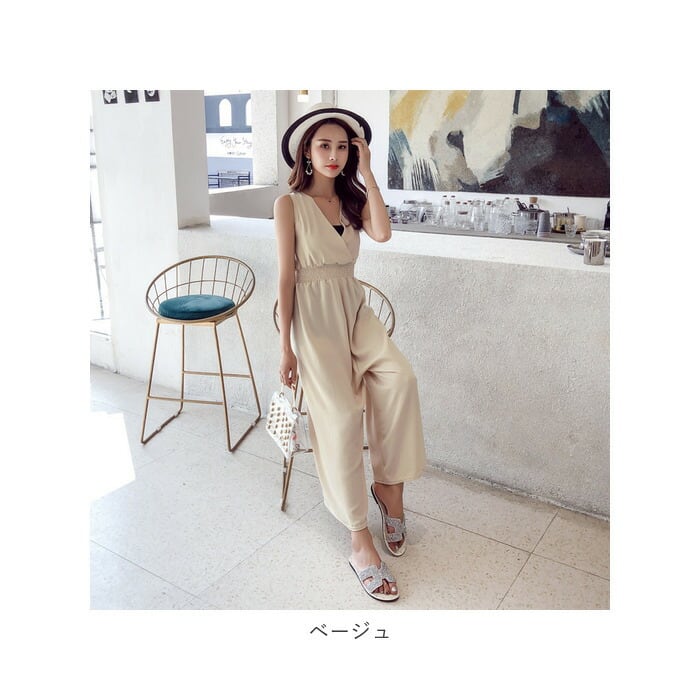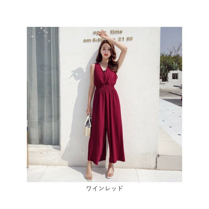 オールインワン ワイドパンツ Vネック おしゃれ xkwoi23