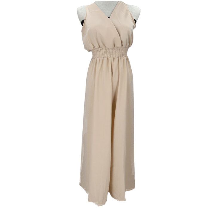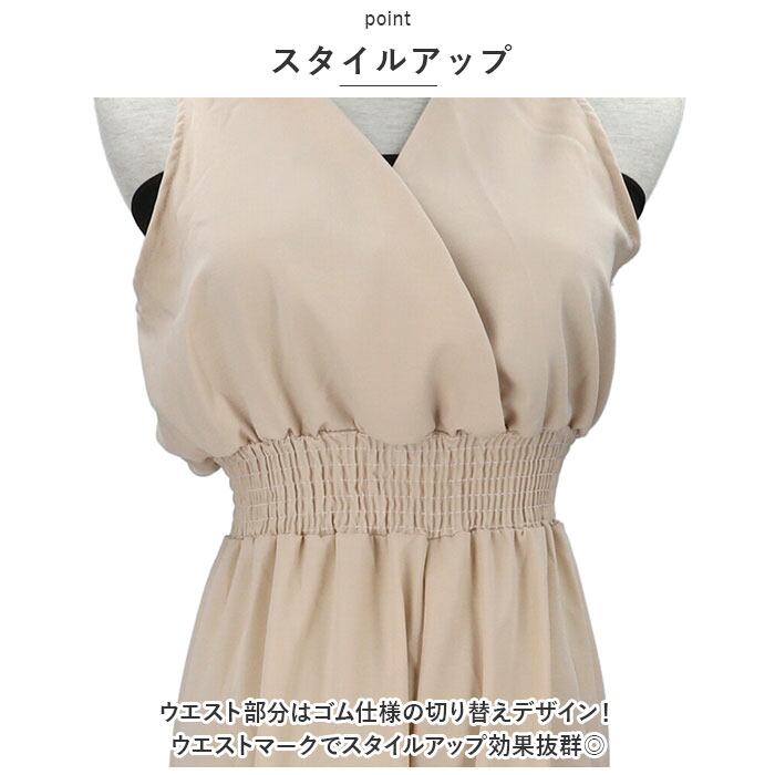 オールインワン レディース サロペット 通販 ガウチョパンツ ワイド パンツ サロペ ワンピ ワンピース ハイウエスト ノースリーブ aライン 七分丈 無地 Vネック 麻混 おしゃれ シンプル