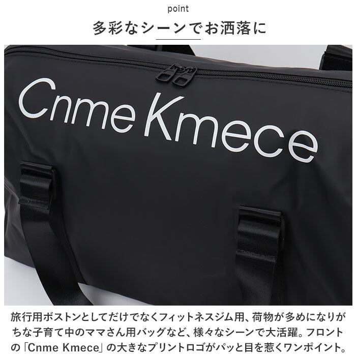 ※旅行用ボストンとしてだけでなくフィットネスジム用、荷物が多めになりがちな子育て中のママさん用バッグなど、様々なシーンで大活躍。フロントの「Cnme Kmece」の大きなプリントロゴがパッと目を惹くワンポイント。