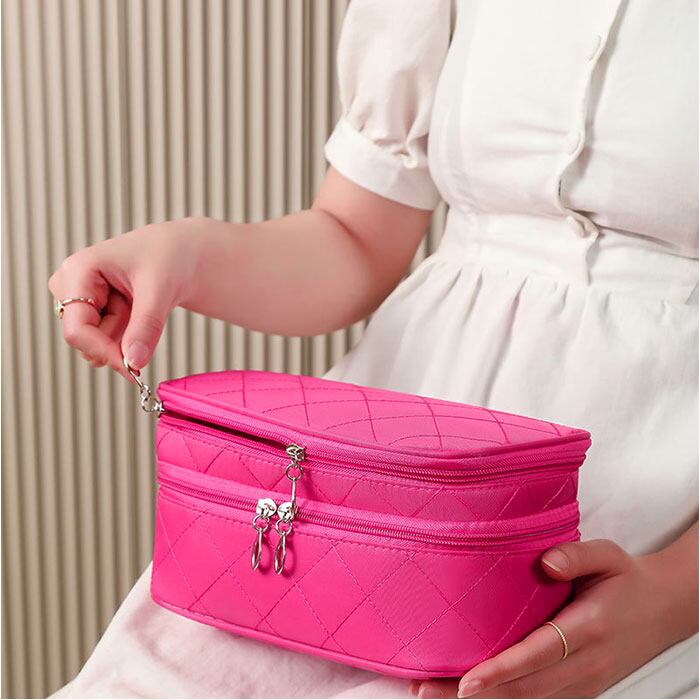 ・普段使いのコスメを、まとめてすっきり収納。旅行や出張の際は、そのまま持ち出せて準備の時短に。嬉しい持ち手付き。