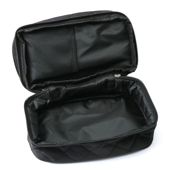 ・もう1つのルームには、パウダーやクッションファンデ、トラベルサイズのスキンケアボトルなどを。細かい物がまとまるメッシュポケットも配置。