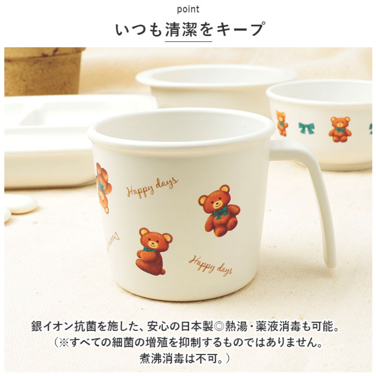 ・銀イオン抗菌を施した、安心の日本製◎熱湯・薬液消毒も可能。(※すべての細菌の増殖を抑制するものではありません。煮沸消毒は不可。)