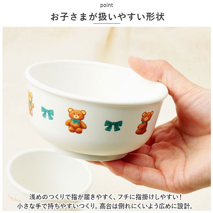 ・浅めのつくりで指が届きやすく、フチに指掛けしやすい!小さな手で持ちやすいつくり。高台は倒れにくいよう広めに設計。