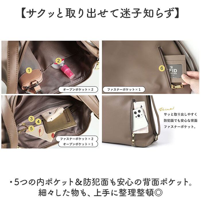 ・5つの内ポケット&防犯面も安心の背面ポケット。細々した物も、上手に整理整頓◎